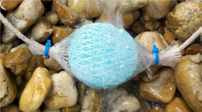 bij een fontein, luchtsteen, in een waterval of in een filter. De Pond Zinger™ lost dan langzaam op waardoor
