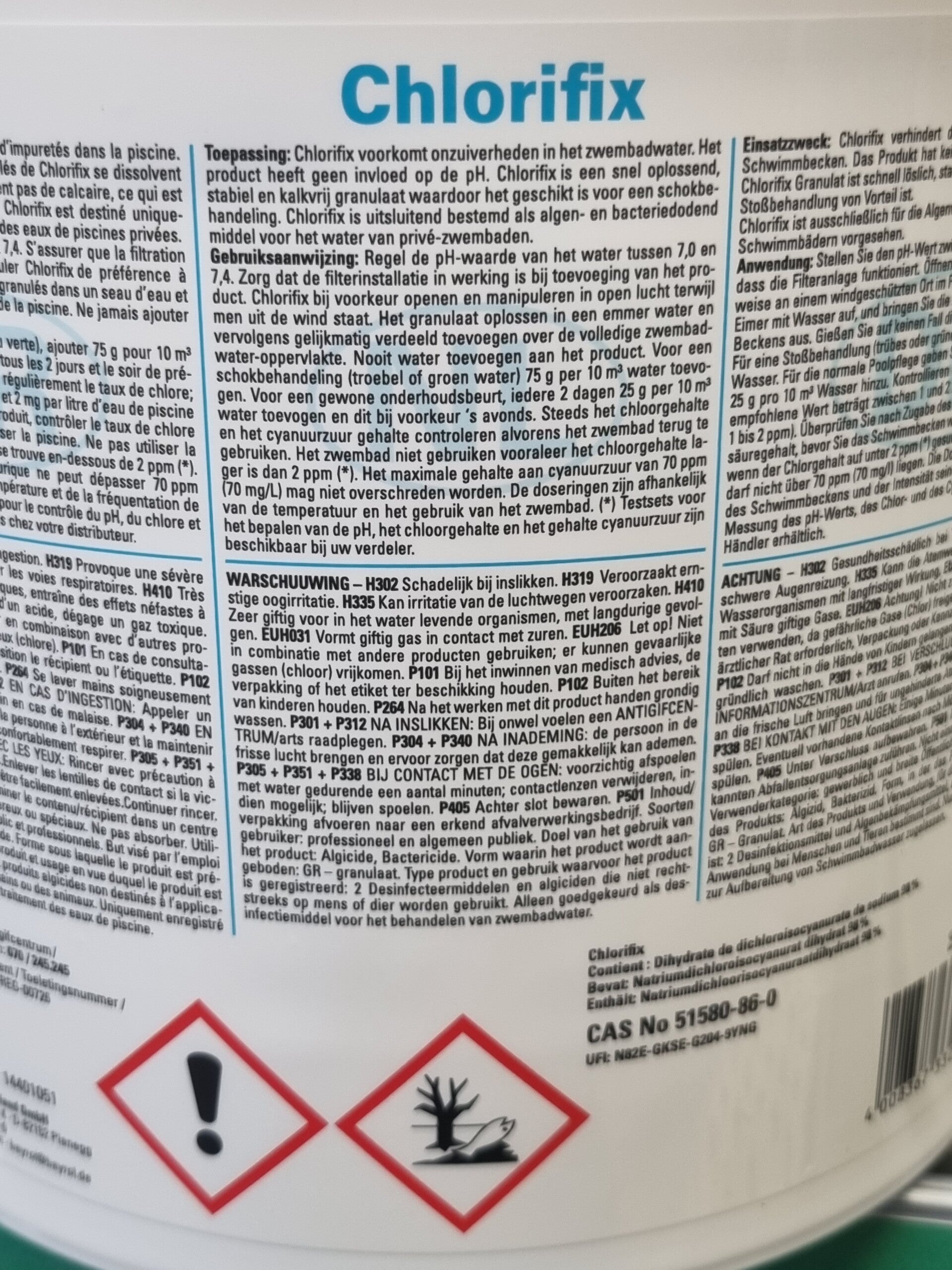 Microkorrels voor shock behandeling in het geval van problemen met de kwaliteit van het water. Intensieve en snelle chloor toevoeging. Minder stof dankzij de vorm van de microkorrels.