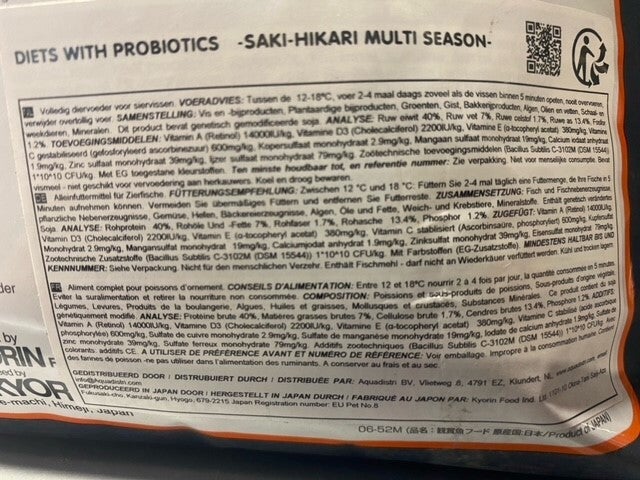 De combinatie van gemakkelijk verteerbare ingrediënten, waaronder tarwekiempitten met probiotic bacteriën, zorgt ervoor dat Saki-Hikari Multi Season uitstekend verteerbar is bij de laagste watertemperaturen
