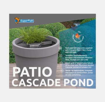 De Patio Cascade Pond is een complete terrassen balkonvijver met geïntegreerde waterval, pomp, filter én LED-verlichting. Hiermee creëer je eenvoudig een rustgevende waterpartij, zelfs op een klein terras.