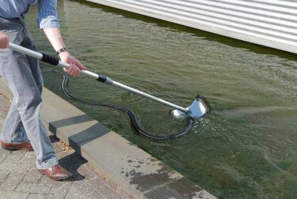 Deze borstel kan je gebruiken op een telescoop steel of koppelen aan een vijverstofzuiger. door de haren aan de zijkanten kan je al het vuil in de hoekjes van de vijver meepakken.