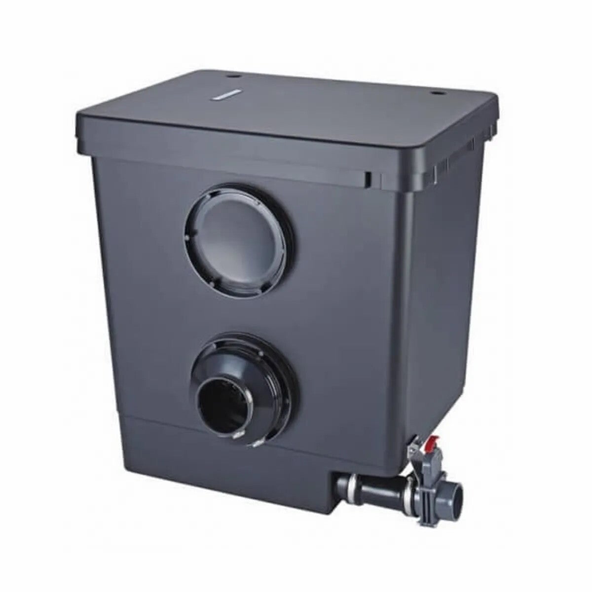 Met de ProfiClear pompkamer maak je een plaatsbesparende en energie-efficiënte integratie mogelijk. De pompkamer biedt plaats aan twee Aquamax Eco Gravity pompen en twee Bitron Gravity UVC eenheden. De pompkamer biedt de hoogste flexibiliteit qua aansluiting door middel van DN110 en 2" doorvoeren.