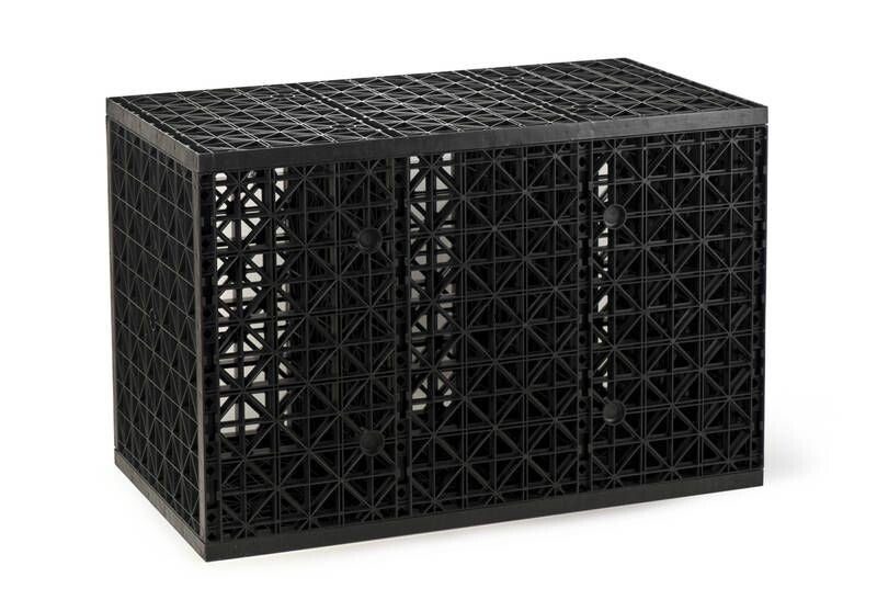 - Sterke, modulaire matrixblokken voor een verborgen watertank die onder de grond in een met folie beklede bassin wordt geplaatst