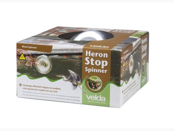 Hetzelfde principe wordt o.a. gebruikt bij raketlanceringen om vogels op een afstand te houden. Door deze unieke Heron Stop Spinner bij de vijverrand te plaatsen wordt een directe vluchtreactie teweeg gebracht die voorkomt dat reigers de vijver zullen benaderen en daarmee kostbare vissen tot het laatste exemplaar uit de vijver vangen. Ze zullen ook niet snel naar deze vijver terugkeren.